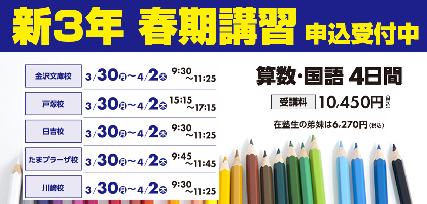 2026年1月17日 / 最終更新日 : 2026年1月31日 啓進塾 お知らせ 2026年2月 新学年スタート(2/9の週より) ※詳しくはお気軽にお問い合わせください。 塾で“完結”できる、安心の学習環境 啓進塾では、授業時間だけでなく「授業以外の学びの時間」も大切にしています。 ご家庭での学習負担をできる限り軽減し、塾の中ですべてが完結する学習 […]