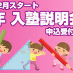 2020年11月5日 / 最終更新日 : 2021年1月4日 啓進塾 イベント情報 小学3年生対象 冬期講習受付中! 小学3年生対象 冬期講習の内容が決定いたしました。 冬期講習は小学3年生の方ならどなたでも参加できます。 冬期講習からそのまま入塾して、新4年生以降も継続することも可能です。 冬期講習 4日間 金沢文庫校 12/26 […]
