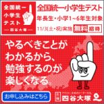 2018年10月6日 / 最終更新日 : 2018年11月3日 啓進塾 イベント情報 全国統一小学生テスト お申込み受付中! 金沢文庫校・たまプラーザ校が受験会場になっています。 全国統一小学生テスト実施要項 日時 2018年11月3日(土・祝) 会場 啓進塾 金沢文庫校 たまプラーザ校 科目 3年 算数・国語(各35分) 4年 算数・国語 […]